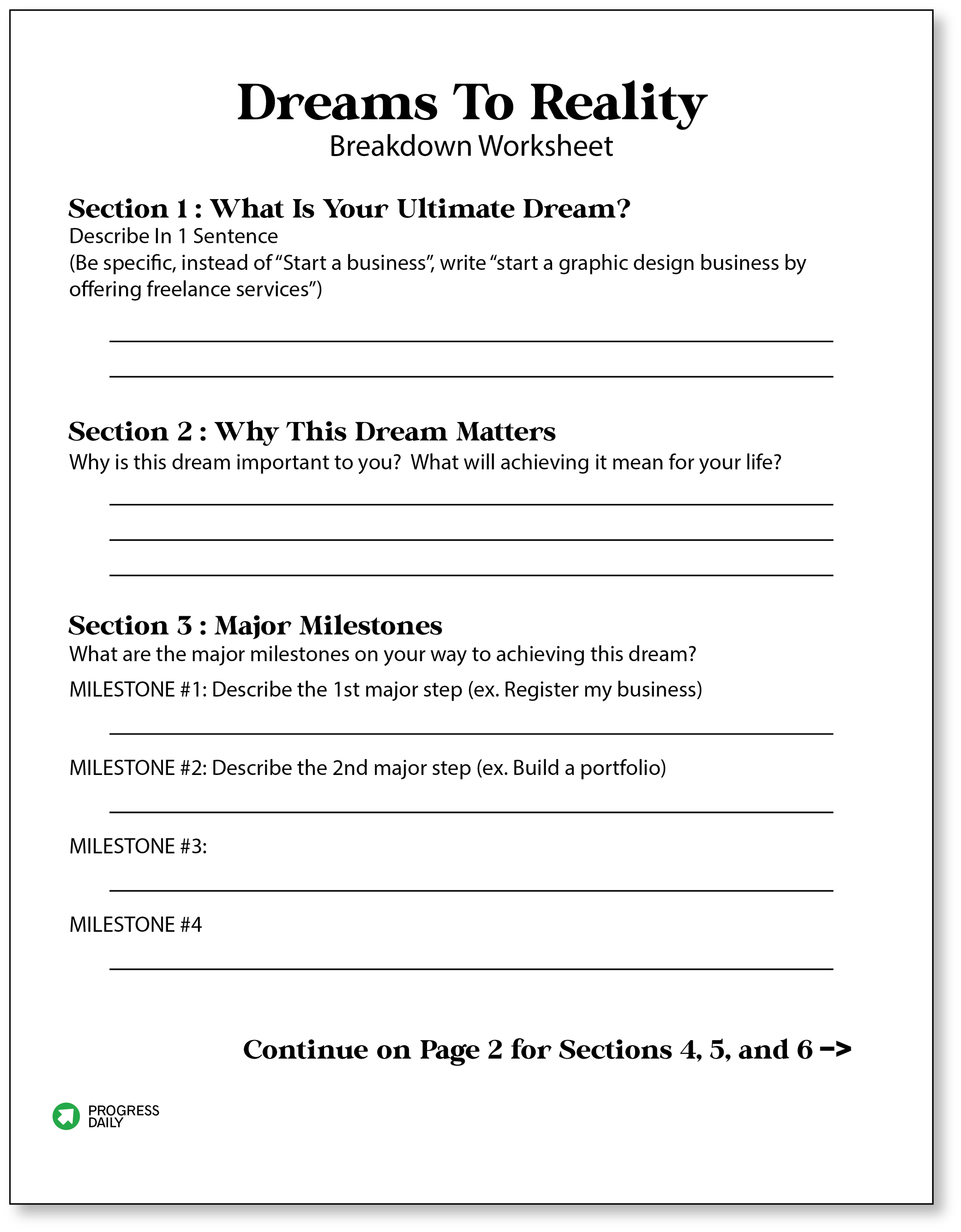 Progress Daily’s mission is to help people break down ambitious dreams into small, manageable steps
